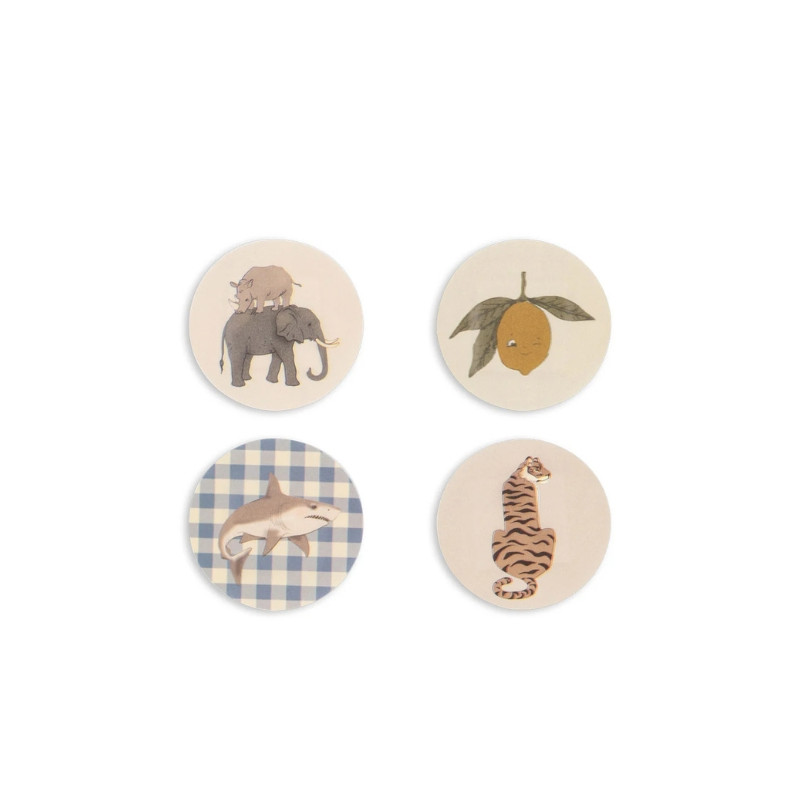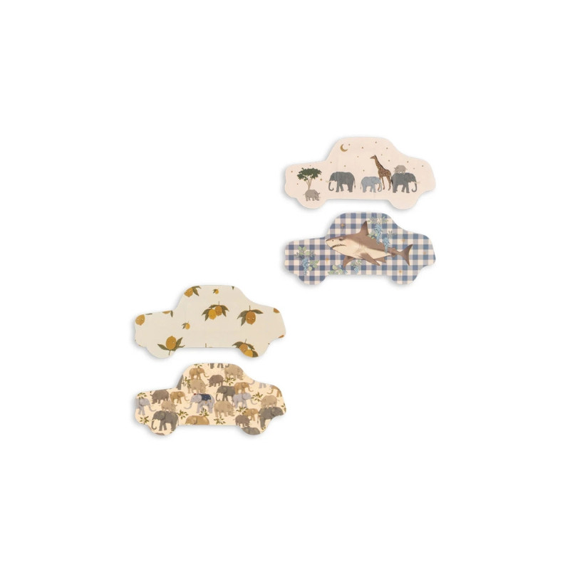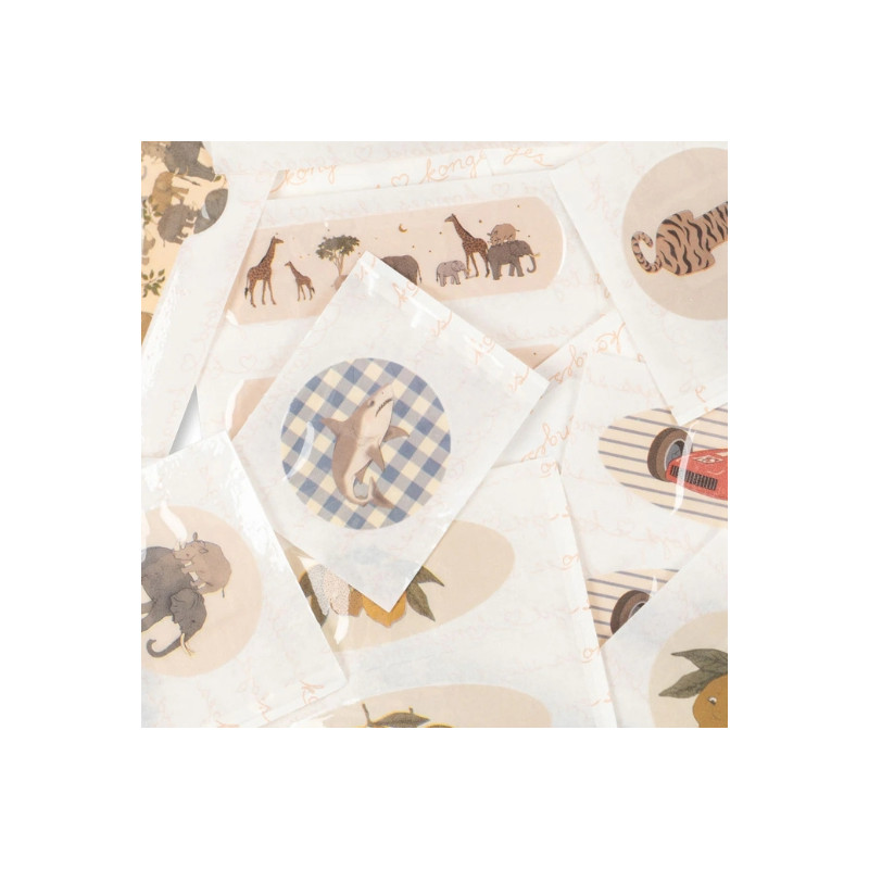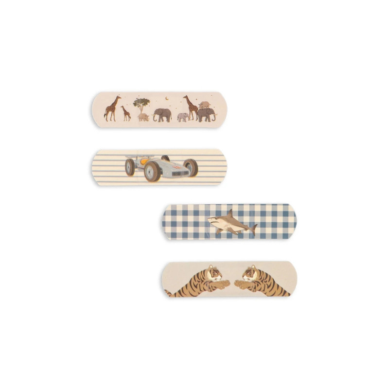Les pansements Konges Slojd protègent les petites blessures avec douceur. Résistants à l’eau et faciles à retirer, ils sont décorés de motifs ludiques. Set de 24 pièces, en 100 % polyéthylène, certifié CE, dès 24 mois.