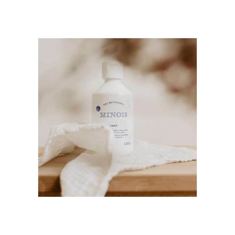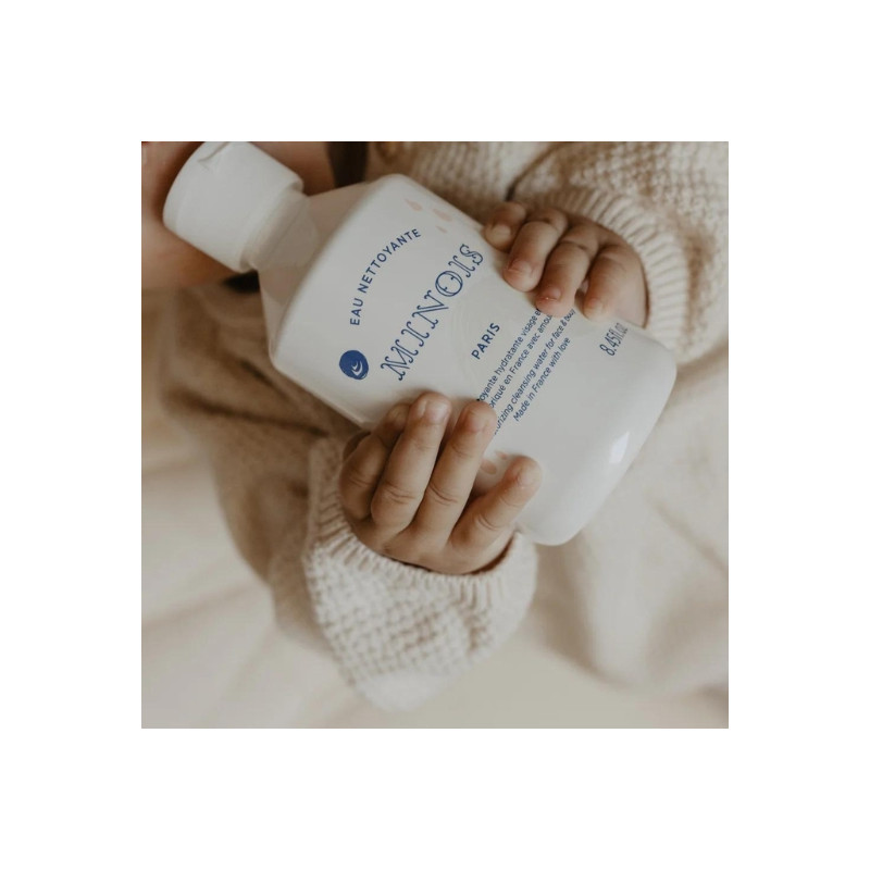 L'eau nettoyante de chez Minois Paris, est une solution douce et efficace pour nettoyer et hydrater la peau délicate des bébés et des enfants. Formulée avec des ingrédients naturels, cette eau nettoyante est idéale pour une utilisation quotidienne sur le visage et le corps, offrant une sensation de fraîcheur et de propreté tout en respectant l'équilibre cutané des tout-petits.