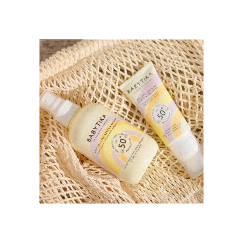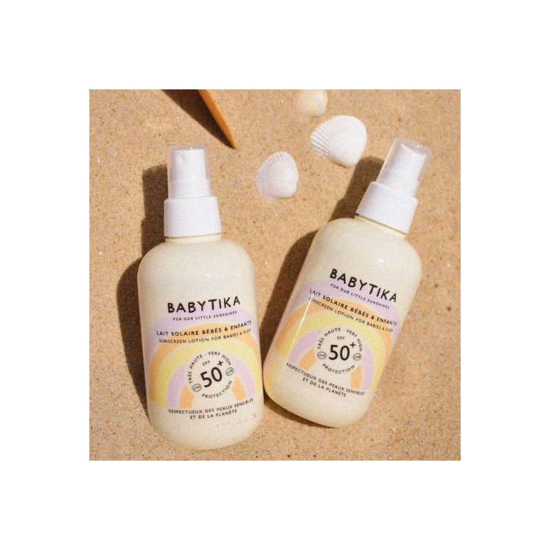 Avec le Lait Solaire Babytika SPF50+, la peau des enfants est protégée, leur capital solaire préservé et leur barrière cutanée renforcée : prêts pour toutes les aventures en plein air !