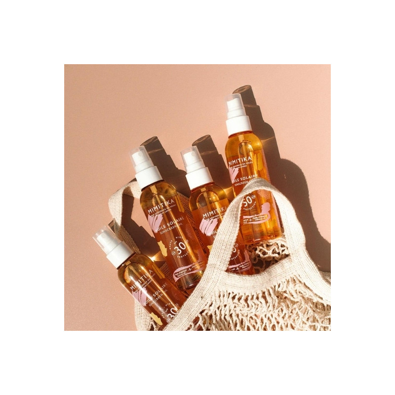 Profitez de la sensorialité d'une huile sèche combinée à une protection UV efficace. L'huile Solaire SPF30 de chez Mimitika offre une haute protection contre les UVA et les UVB, tout en laissant la peau satinée et sublimée.