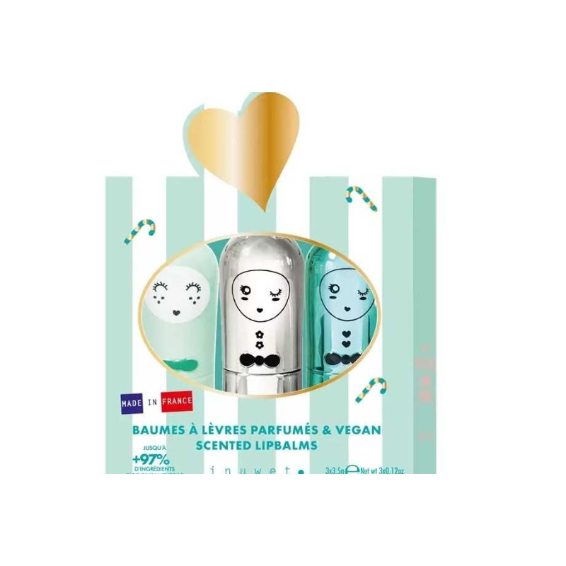 Voici une véritable symphonie de douceur pour vos lèvres ! Le trio de baumes jingle aqua de la marque Inuwet est le compagnon idéal pour une hydratation gourmande et un sourire éclatant.