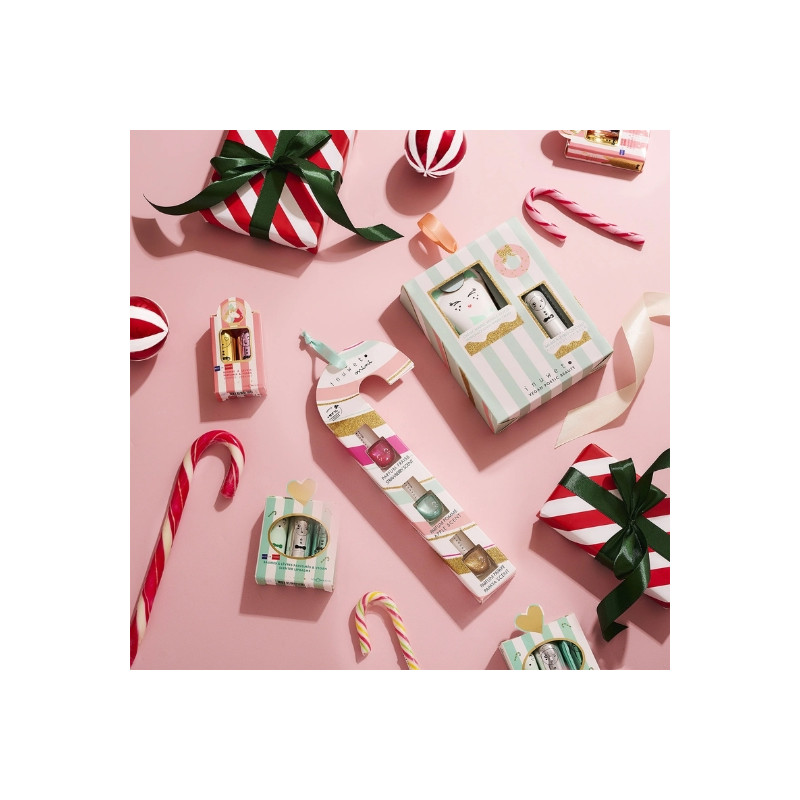 - Trois baumes à lèvres aux parfums envoûtants pomme, coco et cupcake