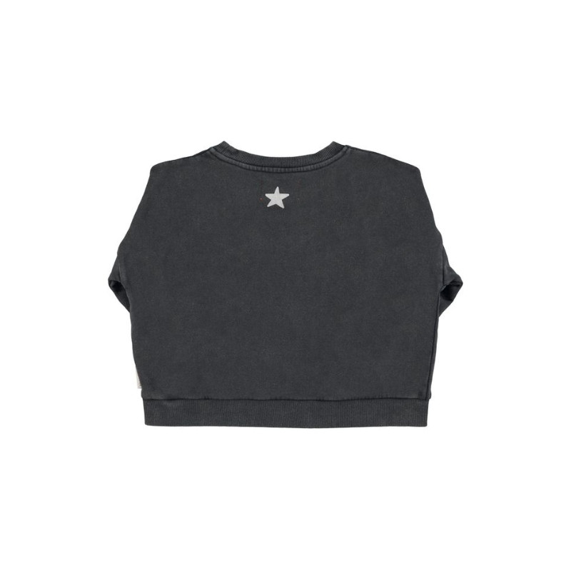 Sweat-shirt unisexe Piupiuchick AW25 en coton bio noir délavé, avec imprimé "Jimi Hendrix 1942", étoile blanche au dos, coutures apparentes et finitions côtelées.