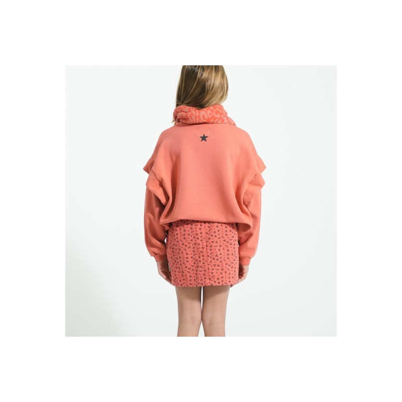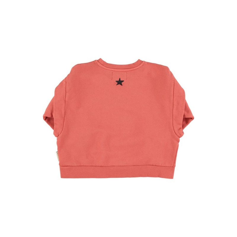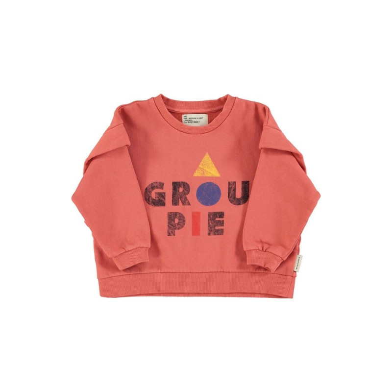 Sweat-shirt rose Piupiuchick AW25 en coton biologique cardé, coupe ajustée, imprimé "groupie" à l’avant et étoile noire au dos. Confortable et responsable.