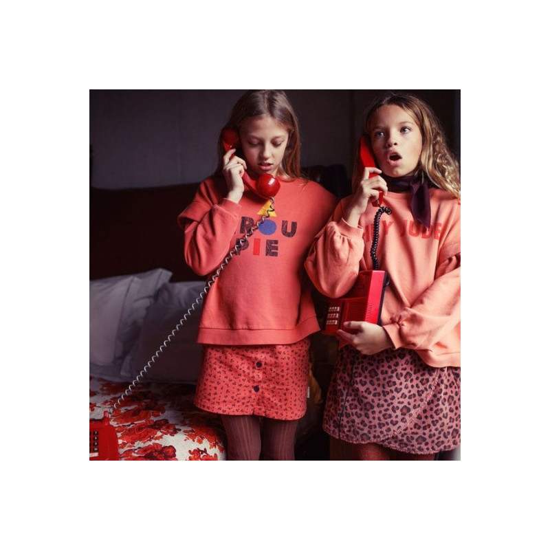Sweat-shirt rose de la collection AW25 de Piupiuchick, orné d’un imprimé « groupie » sur le devant et d’une étoile noire dans le dos. Confectionné en molleton doux 100 % coton biologique cardé, il offre une coupe ajustée avec poignets et ourlet côtelés pour un confort optimal au quotidien. Un basique fun et responsable à adopter dès maintenant.
