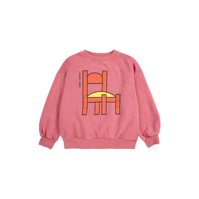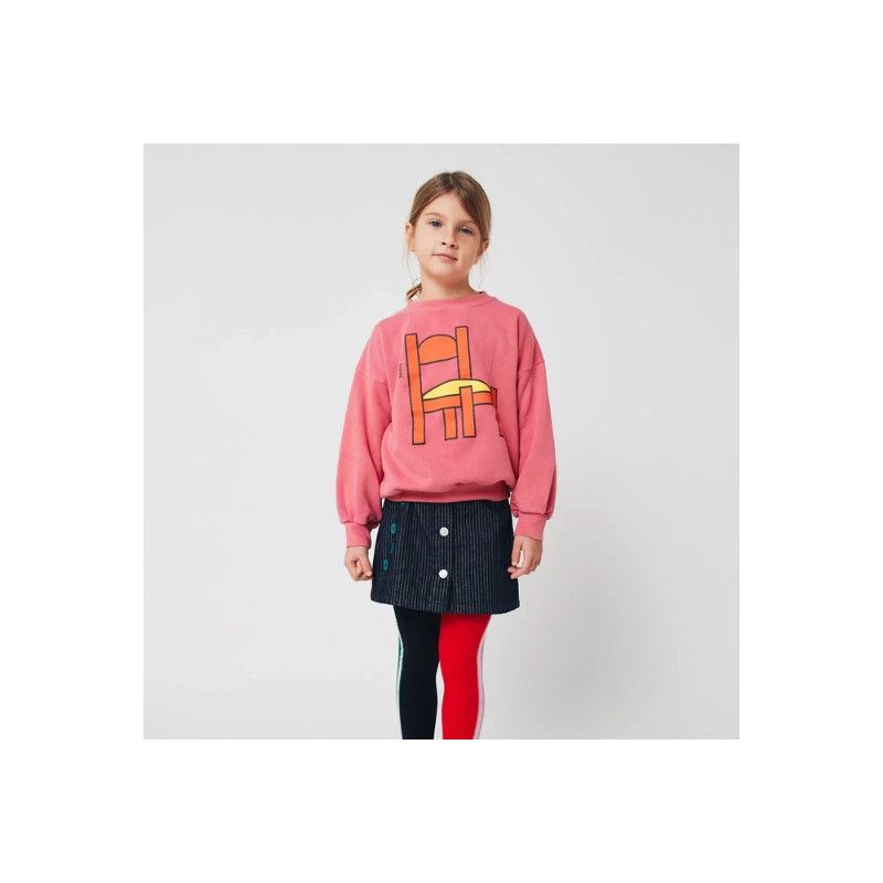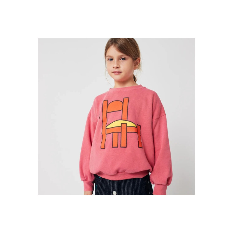 Sweat rose pour enfant de la marque Bobo Choses. Coupe ample, col rond, poignets et ourlet en bord-côte, intérieur en molleton brossé.
