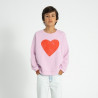 Sweatshirt en coton molletonné lila, coupe confortable, avec grand imprimé cœur rouge sur le devant. Doux, chaleureux et facile à porter au quotidien