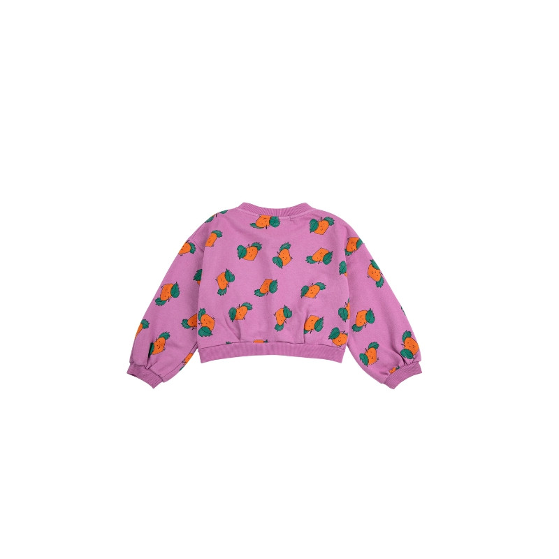 Sweat-shirt cropped en molleton doux, imprimé mandarine all over, col rond. Confortable et ludique.