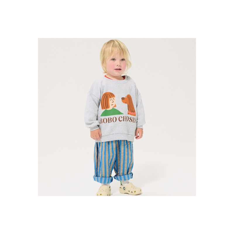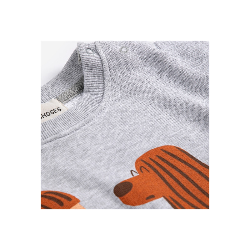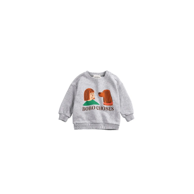 Sweatshirt gris chiné à motif ludique.