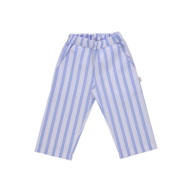 Pantalon Coing enfant Poudre Organic à rayures bleues. Confortable et facile à porter, parfait pour un style naturel au quotidien.