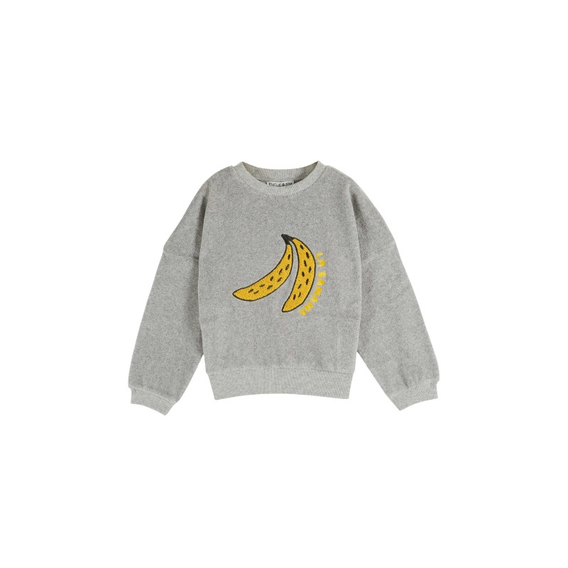 Émile & Ida : Sweat brodé banane enfant - gris chiné