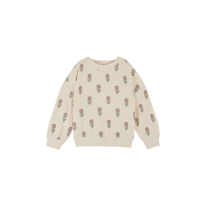 Sweat-shirt en éponge douce imprimé Margot crème, parsemé de petites fleurs délicates aux teintes tendres. Sa coupe confortable avec épaules légèrement tombantes et finitions bord-côtes au col, aux poignets et à la base assure un porté souple et agréable. Une pièce pleine de douceur, parfaite pour le quotidien.