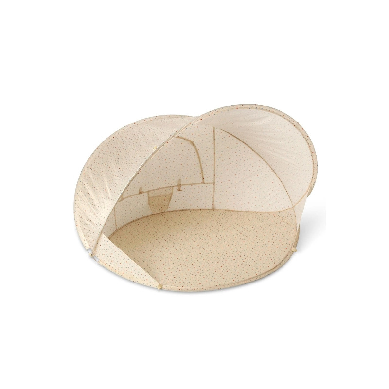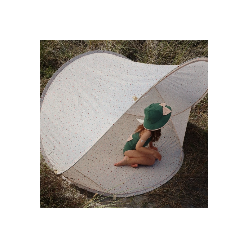 Découvrez le tout nouveau modèle de tente dans son imprimé "multihearts" de chez Konges Slojd, votre nouvel indispensable de l'été. Que ce soit au bord de la plage ou dans le jardin, cette tente protègera les tout-petits des rayons UV avec une protection de 50+ grâce à sa toile en imprimé cœur.