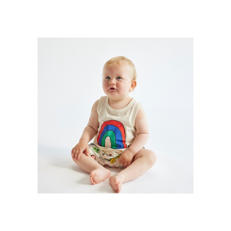 Ce débardeur pour bébé est conçu en coton. Il dispose d'un col rond et d'un imprimé coloré "arc-en-ciel".