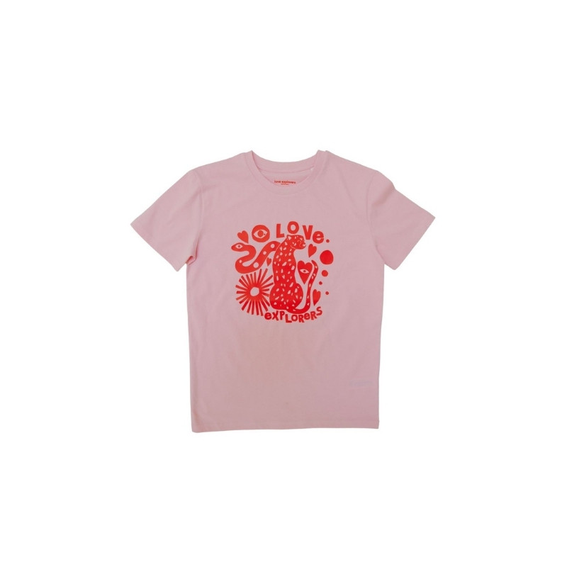 Le t-shirt HIT de l'été est arrivé ! Découvrez vite cette pièce essentielle inspirée de l'univers de Love Explorers qui sublimera vos looks d'une note de couleur rose féminine et tendance ! Son imprimé rouge sur le devant arbore un léopard et un serpent accompagnés de petits coeurs et autres motifs qui inspirent l'été indien. Ce t-shirt est un incontournable pour vos journées à la plage et autres sorties estivales !