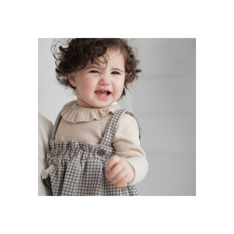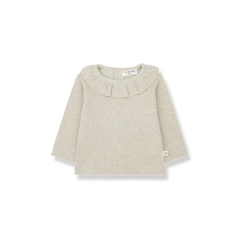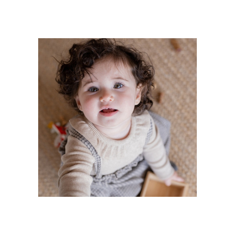 Craquez pour ce t-shirt bébé Anna coloris "oatmeal". Ce basique à col volanté est tout simplement irrésistible ! Avec sa matière en jersey côtelé doux, il offre à bébé un confort absolu tout en lui donnant un look chic et intemporel. Ce petit col plissé ajoute une touche de délicatesse qui fera fondre tous les cœurs ! Facile à enfiler et à assortir, ce t-shirt est idéal pour les journées fraîches. Il est assez léger pour être porté en intérieur, mais suffisamment chaud pour tenir bébé bien au chaud lors de vos balades d’automne. Ce t-shirt est un must-have pour un look élégant, simple et ultra confortable.
