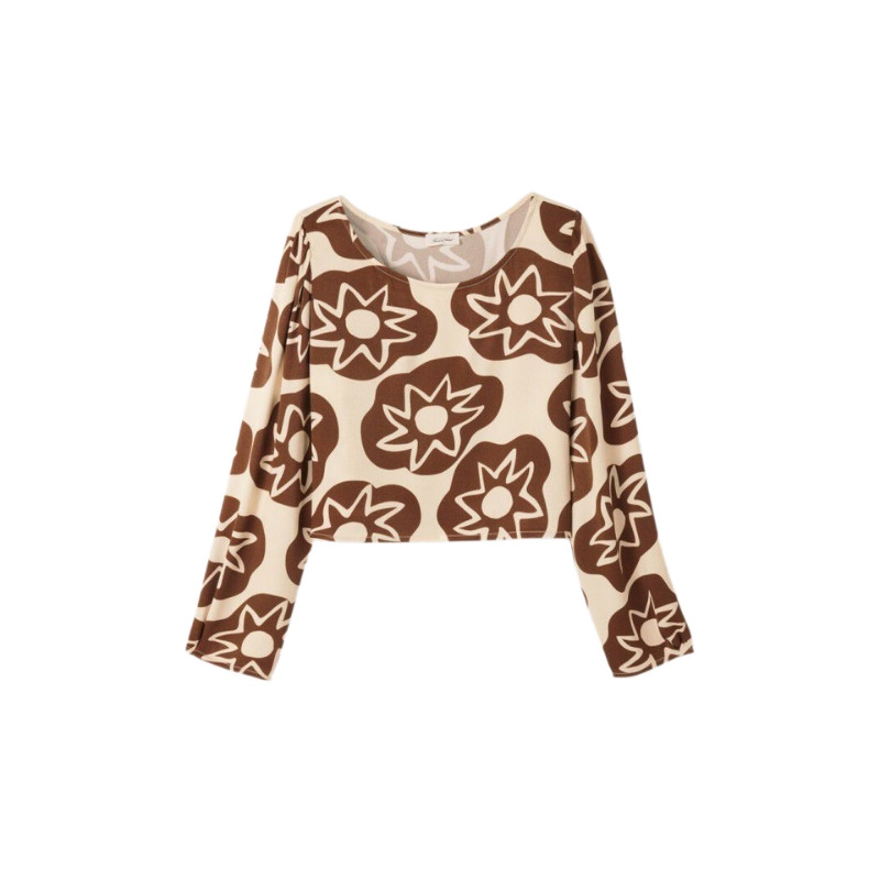 Top court manches longues imprimé Babeth - marron/écru - American Vintage