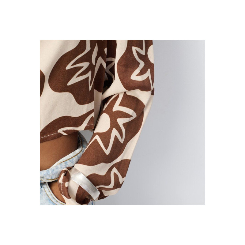 - Imprimé floral marron et écru