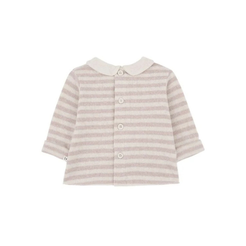 Délicat et raffiné, le t-shirt Alizée de la marque +1 in the family mise sur l’élégance des rayures douces et d’un col rond contrasté. Parfait pour les tout-petits, il allie confort et style avec ses manches longues et sa coupe ample. Un basique chic du vestiaire bébé, à porter au quotidien ou pour une jolie occasion.