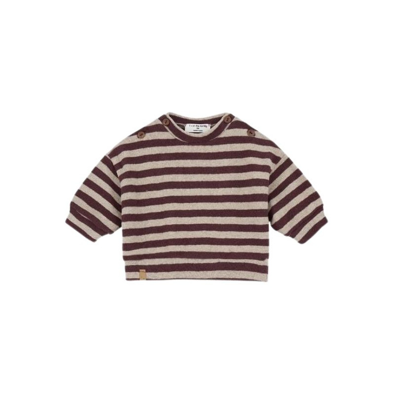Le t-shirt Dirk de la marque +1 in the family séduit par son motif à rayures bordeaux et beige, à la fois doux et intemporel. Confortable avec ses manches larges et ses poignets souples, il est aussi pratique grâce à ses boutons en bois sur les épaules. Un basique élégant et facile à enfiler pour le quotidien.