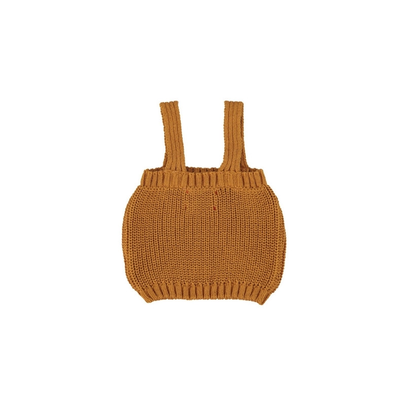Ce débardeur Piupiuchick en tricot couleur camel séduit par son charme rétro et sa douceur naturelle. Tricoté dans une maille texturée agréable à porter, il est orné d’un joli motif fleur contrasté sur le devant, apportant une touche ludique et poétique. Ses larges bretelles assurent un bon maintien et un confort optimal, tandis que sa coupe légèrement arrondie accompagne les mouvements de l’enfant. Une pièce originale et chaleureuse, parfaite à porter seule aux beaux jours ou superposée sur un t-shirt.