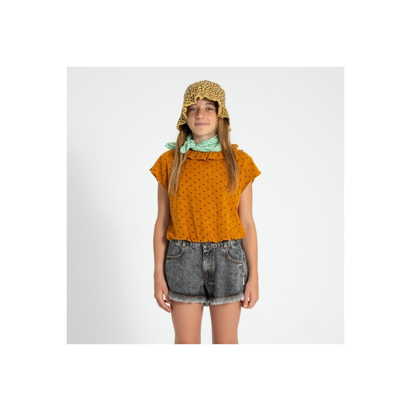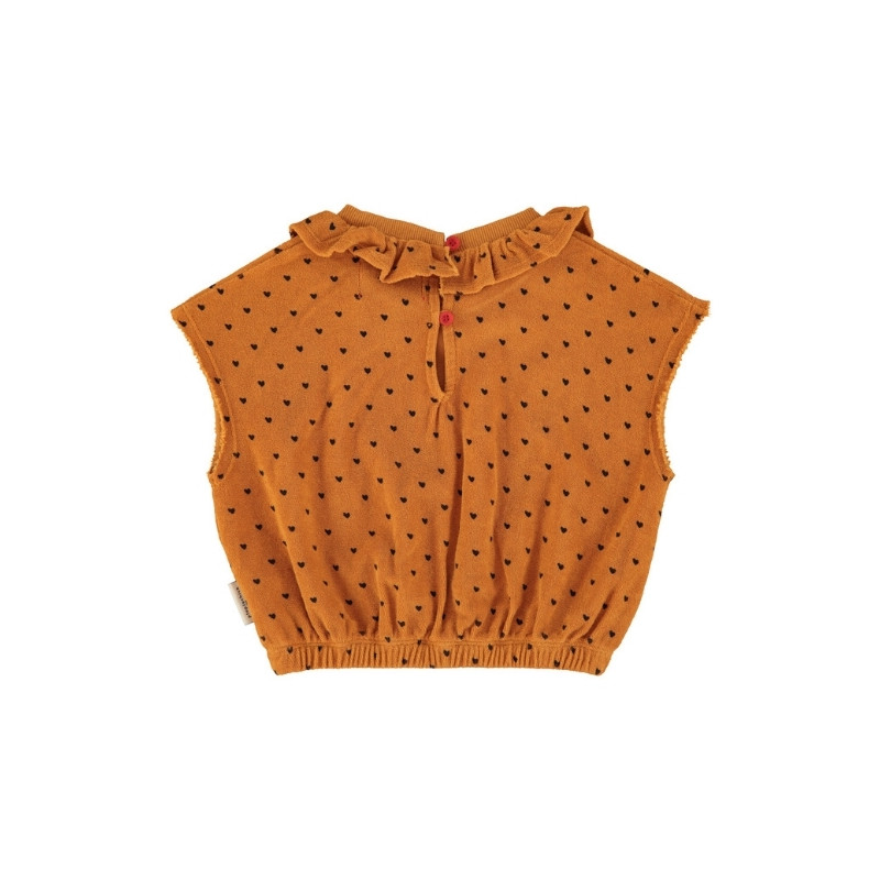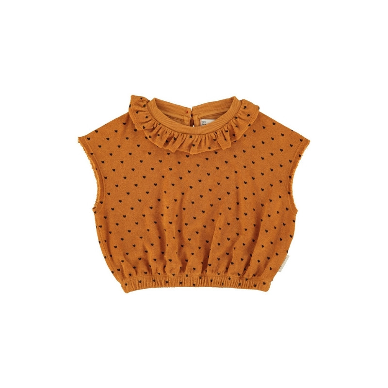 | MODÈLE | Sleeveless Top Collar Camel Black Hearts Allover |