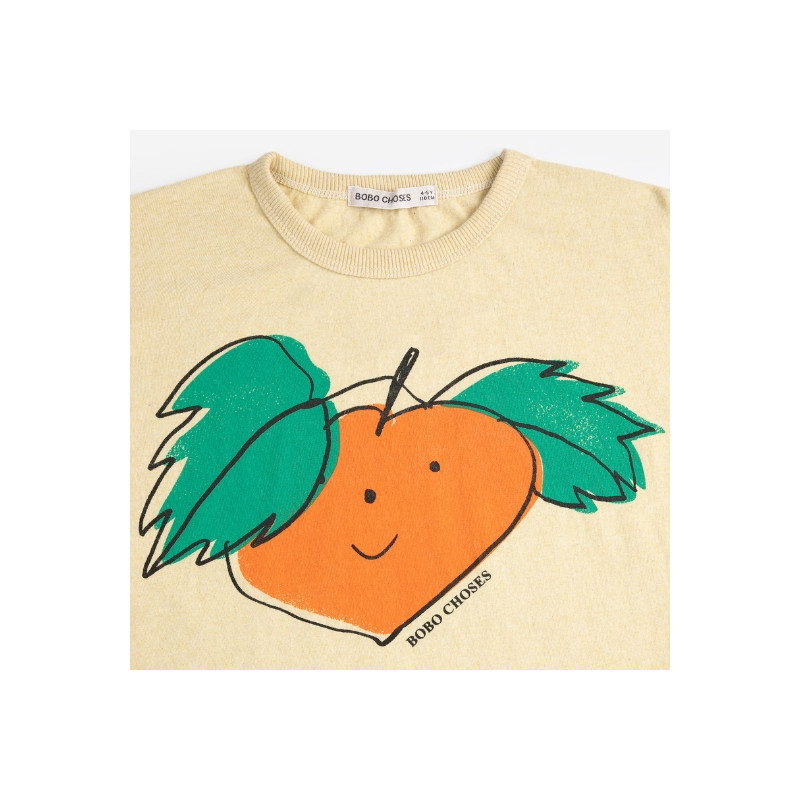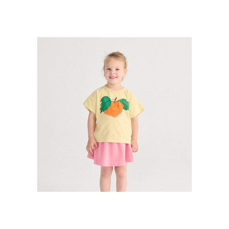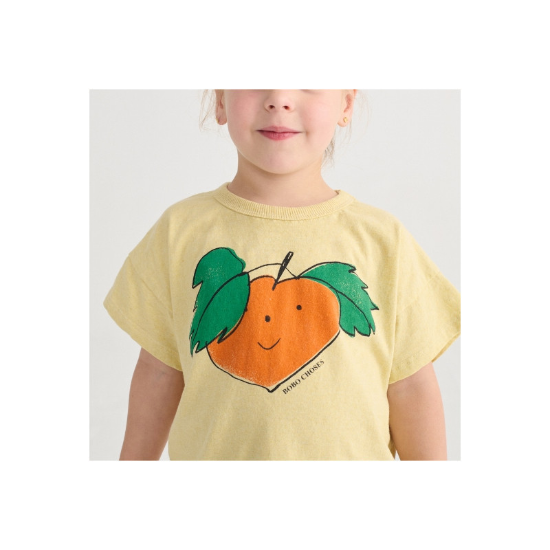Le t-shirt Tangerine jaune apporte une touche de bonne humeur immédiate au vestiaire des enfants. Son imprimé mandarine au visage souriant, aux lignes dessinées à la main, incarne parfaitement l’univers ludique et créatif de la marque.