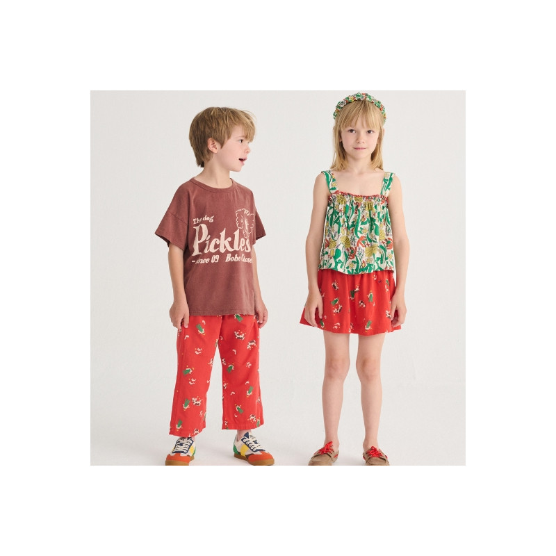 Le t-shirt Pickles The Dog en coloris brun apporte une touche de fantaisie au vestiaire des enfants. Orné d’un imprimé graphique au charme rétro, il met en scène Pickles, le chien emblématique de la marque, pour un look à la fois joyeux et expressif.