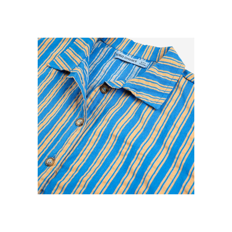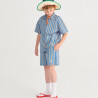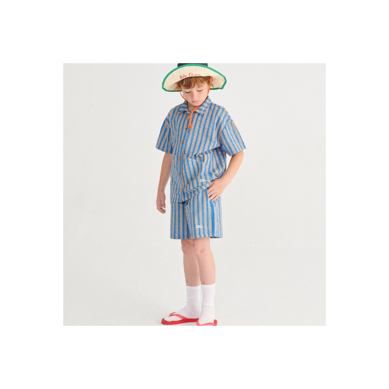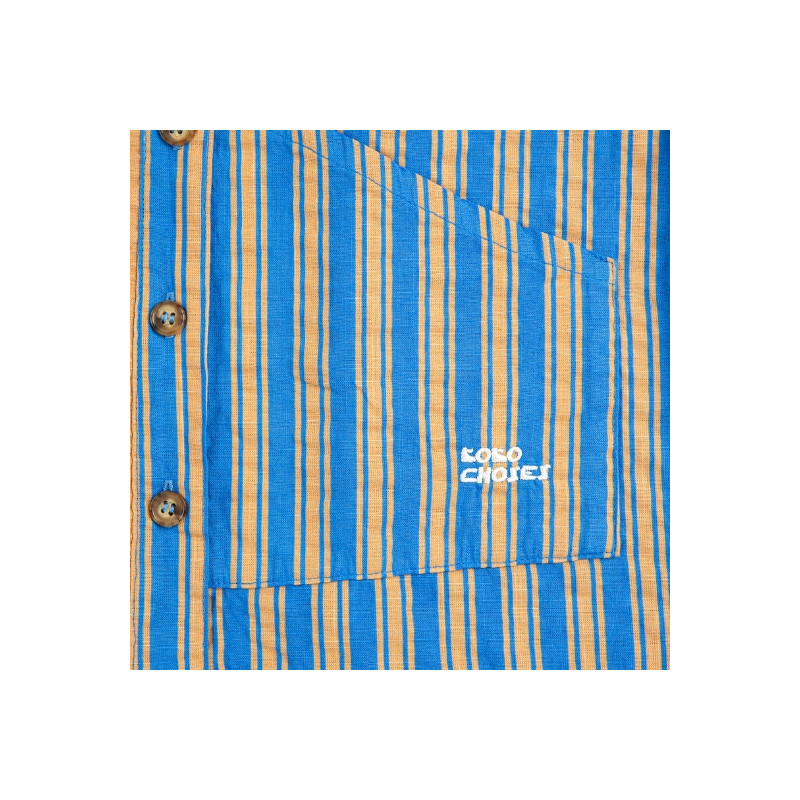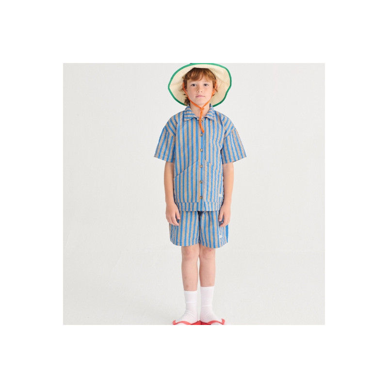 Chemise tissée à manches courtes en coton léger, à la coupe ample et confortable. Son motif rayé et son style décontracté en font une pièce idéale pour un look estival, à porter seule ou en ensemble coordonné.