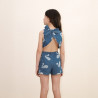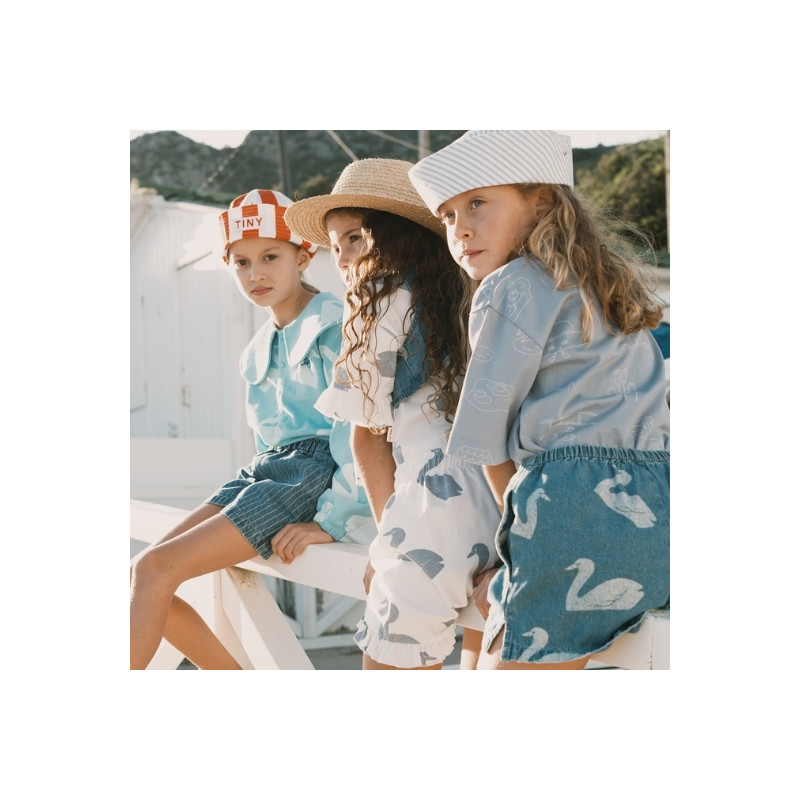 Ce top sans manches en denim bleu est signé Tiny Cottons et se distingue par son imprimé cygnes délicat et son joli détail noué au dos. Confectionné en denim de coton, il offre une tenue agréable et une belle structure tout en restant confortable. Sa coupe légèrement courte et son ouverture au dos, sublimée par un large nœud, apportent une touche originale et élégante. Une pièce pleine de charme, parfaite à associer avec un short, une jupe ou un pantalon pour un look estival doux et raffiné.