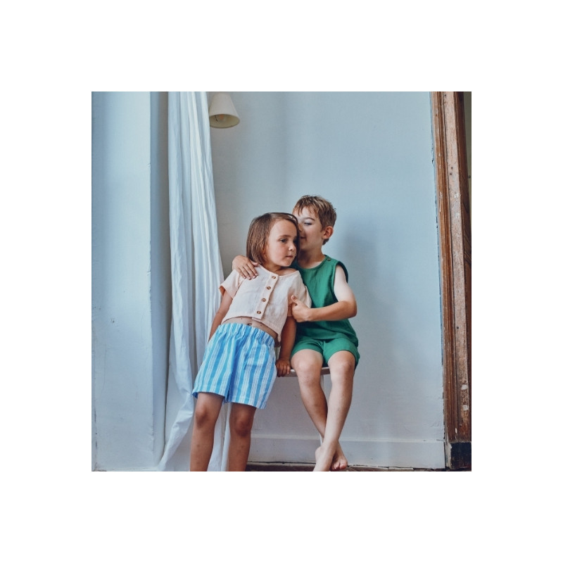 Le top Freesia enfant coloris Scallop Shell de la marque Poudre Organic séduit par sa teinte douce et naturelle. Léger et confortable, il accompagne les mouvements avec simplicité au quotidien. Sa coupe épurée en fait un