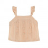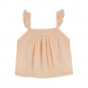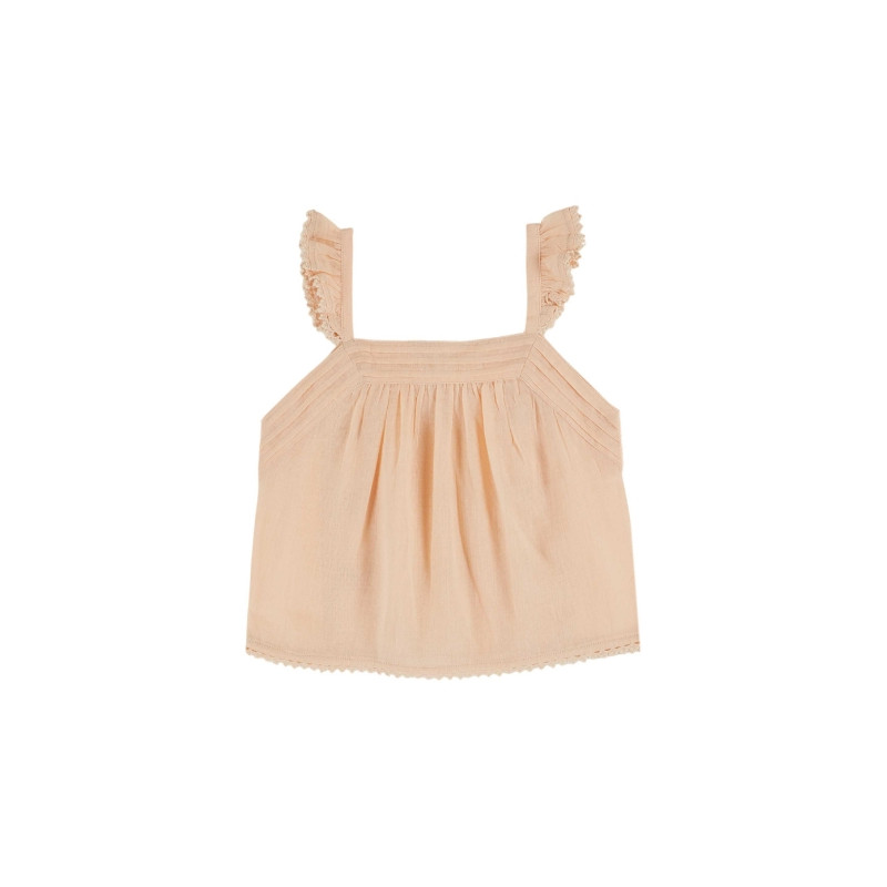 Top en voile de coton abricot, à fines bretelles volantées et détails crochet. Coupe fluide et légère pour un look estival tout en douceur.