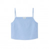 Le top court Feoly est une pièce simple et charmante qui met facilement la silhouette en valeur. Sa coupe ajustée et ses fines bretelles lui donnent une allure légère, parfaite pour les beaux jours. Son coton épais et opaque, subtilement chiné par un fil écru, rappelle l’esprit du linge de maison d’autrefois et apporte un joli relief à la matière. En bas du top, une délicate bande de dentelle vient adoucir l’ensemble et ajoute une touche féminine discrète. Porté avec un short ou une jupe légère, il compose un look estival naturel et élégant.