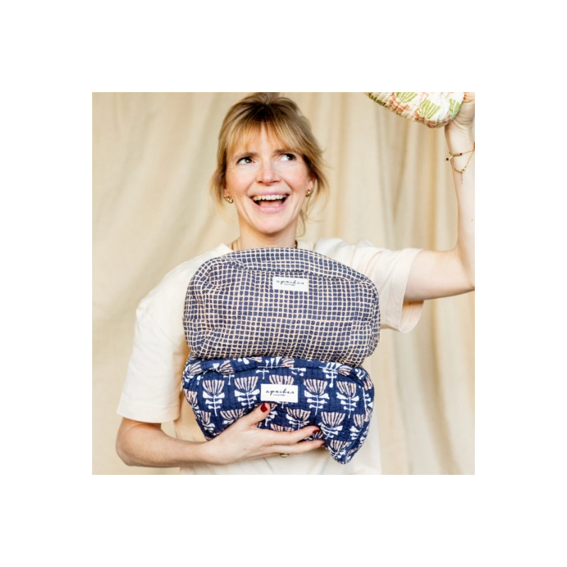 La trousse Gayane de chez Apaches Collections, c’est un peu le couteau suisse en version coton matelassé. Elle aime tout ranger avec style : produits de bébé, secrets de grands, bijoux, crayons ou shampoing miniature. Prête à vous suivre en voyage, à la maison ou chez mamie elle a réponse à tout.