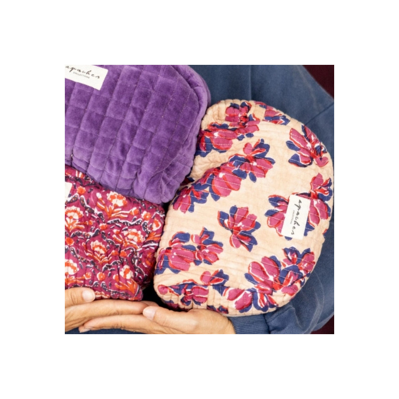 La trousse de toilette Malao violeta d’Apaches Collections séduit par son coton matelassé à l’imprimé floral raffiné. Spacieuse et pratique, elle accueille soins, maquillage ou affaires de bébé. Élégante et fonctionnelle, elle se glisse aussi bien dans la salle de bain que dans la valise.
