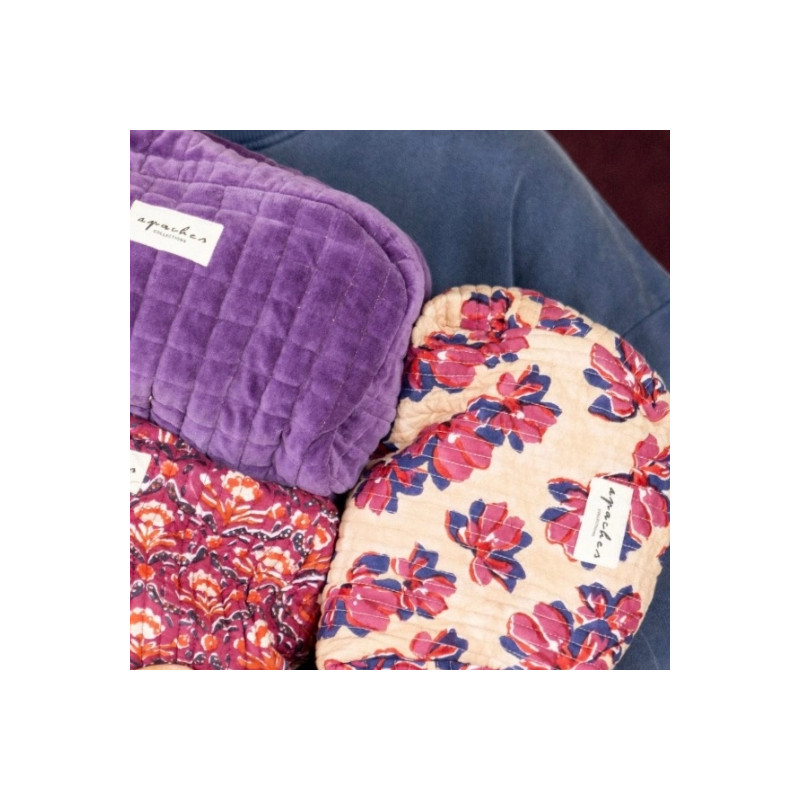 La trousse de toilette Malao violeta d’Apaches Collections allie charme floral et praticité. En coton matelassé, elle offre un format spacieux idéal pour ranger soins, maquillage ou affaires de bébé, à la maison comme en voyage.