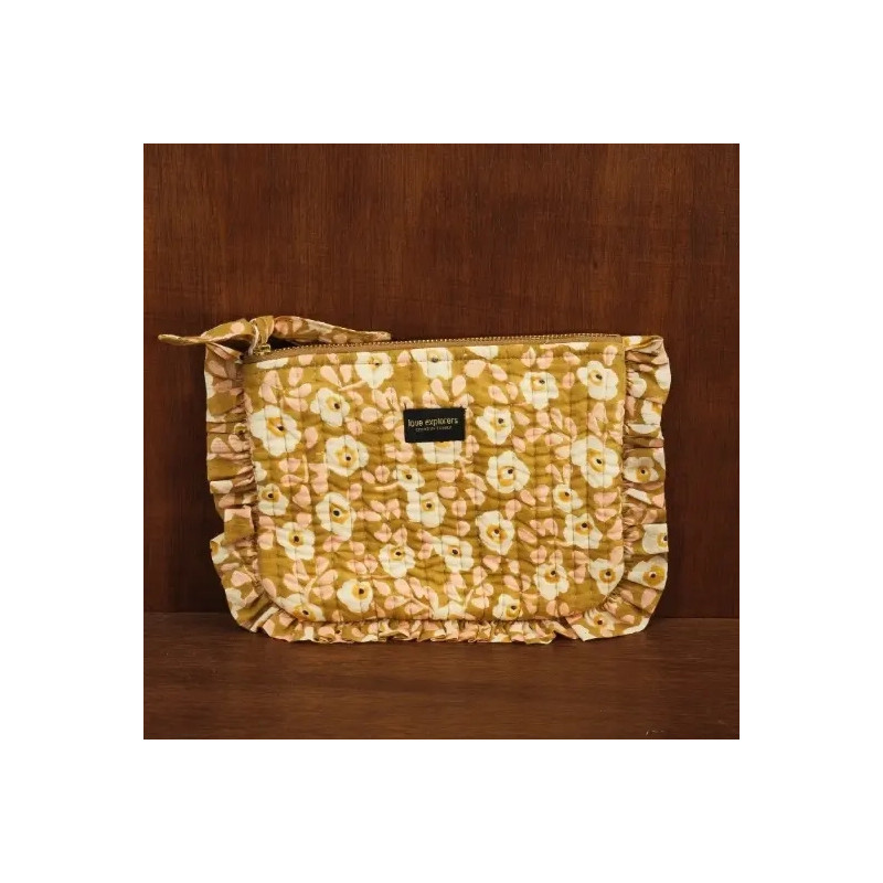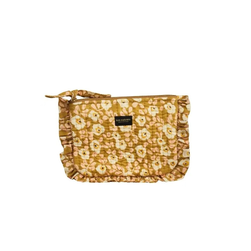 Jolie pochette plate taille M signée Love Explorers, idéale pour organiser maquillage, papiers ou petits essentiels. Son format intermédiaire se glisse facilement dans un sac, tandis que son tissu matelassé à imprimé floral lui apporte charme et douceur. La fermeture zippée ornée d’un nœud élégant ajoute une touche raffinée. Fabriquée artisanalement, chaque pièce peut présenter de légères irrégularités qui font tout son caractère.