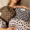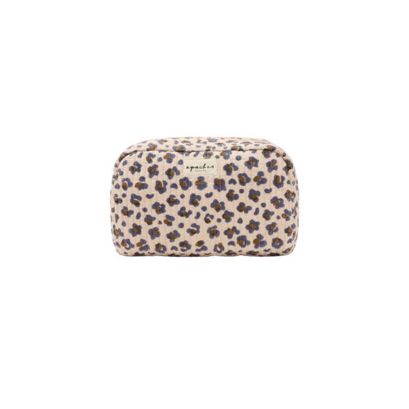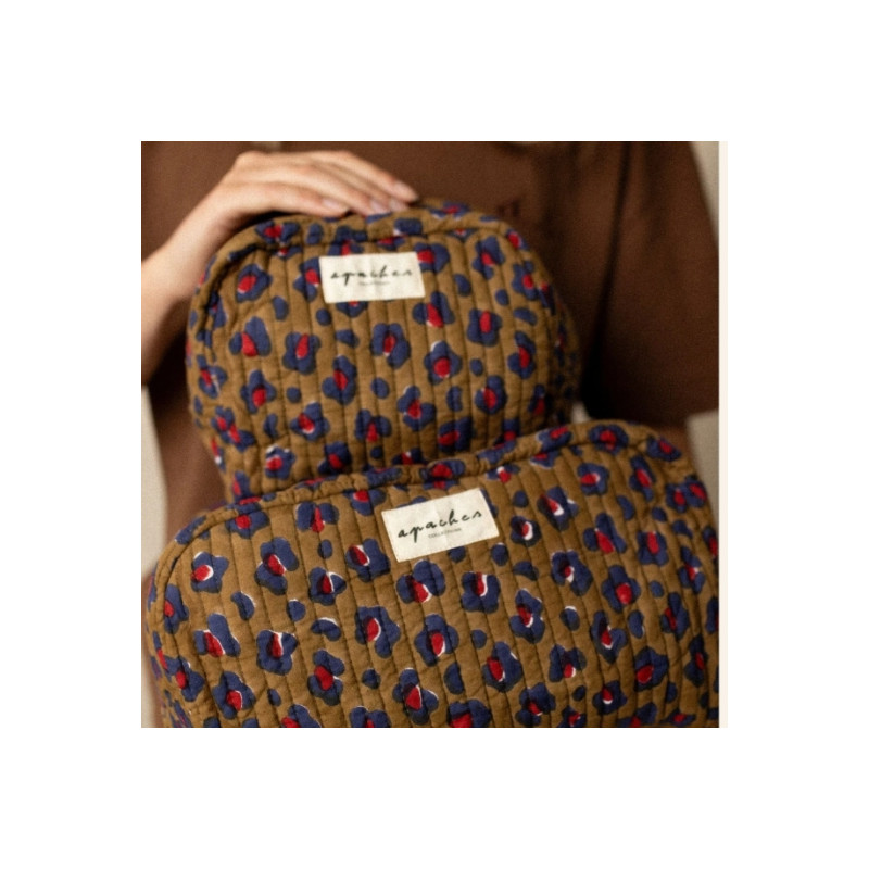 La grande trousse Gayane en coton matelassé présente un imprimé léopard sophistiqué. Elle est spacieuse et pratique pour les essentiels. Elle accompagne les déplacements et le quotidien. Elle s’associe parfaitement au sac Buddha pour un look coordonné.