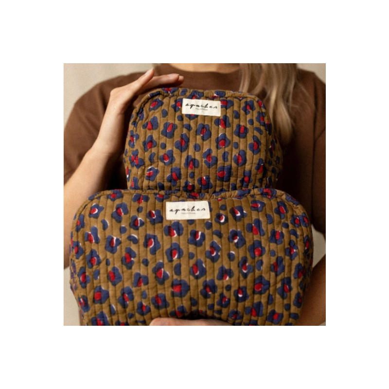 La grande trousse Gayane en coton matelassé séduit par son imprimé léopard sophistiqué. Spacieuse et pratique, elle permet de ranger facilement soins, accessoires ou maquillage. Fonctionnelle au quotidien, elle devient un allié indispensable pour les déplacements comme pour l’organisation à la maison. Associée au sac Buddha, elle apporte une touche féline et moderne à chaque routine.