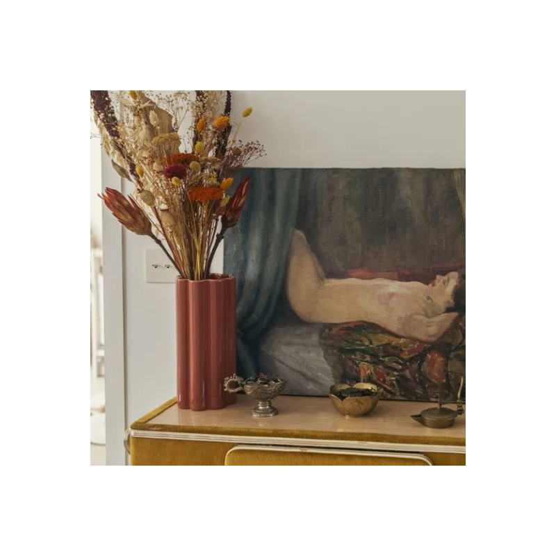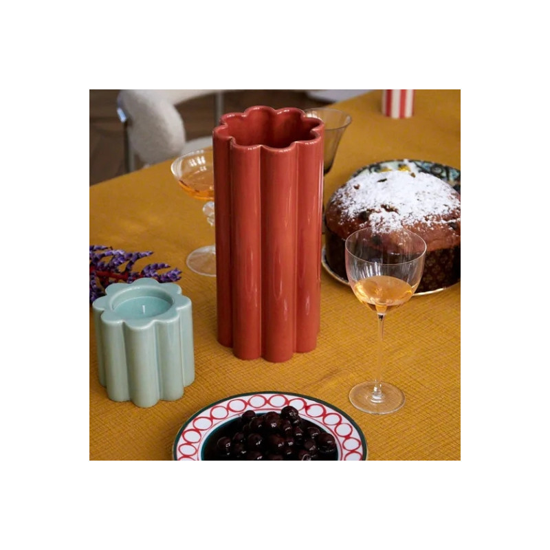 Le vase Duetto Solo en céramique se décline ici dans une teinte terracotta chaleureuse, évoquant les terres ensoleillées et les matières naturelles. Sa silhouette élancée, ponctuée de reliefs ondulés, lui confère un caractère sculptural et contemporain. À la fois objet décoratif et pièce fonctionnelle, il accueille élégamment fleurs fraîches ou séchées, tout en apportant une touche de chaleur et de profondeur à votre intérieur. Sa finition brillante sublime la couleur et joue subtilement avec la lumière.