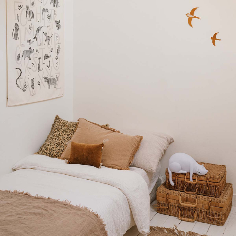 Sur la table de chevet de votre enfant, ou sur une étagère, cette jolie veilleuse chat emmènera votre enfant aux doux pays des songes et sera un allié précieux en cas de mauvais rêve. Petit plus : elle fonctionne grâce à un éclairage LED donc pas de risque que les plus petits se brulent les doigts !