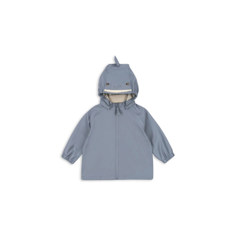 Imperméable léger en PU résistant et imperméable. Sa coupe droite est confortable et son imprimé requin est ludique. Il est coupe-vent avec coutures soudées. Taille et poignets élastiqués pour plus de confort.