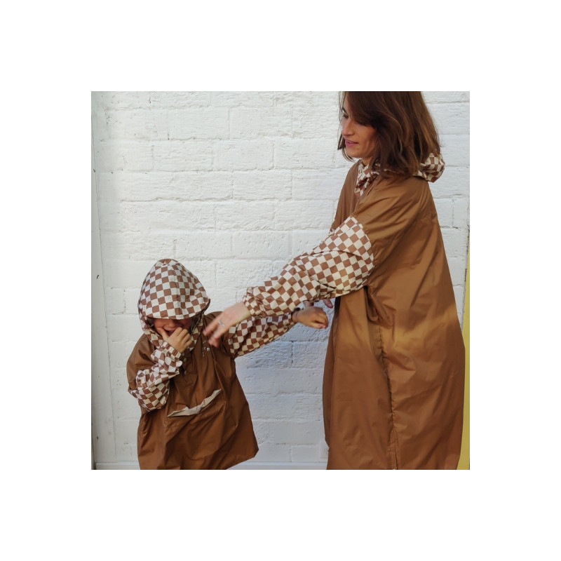 Découvrez le poncho à capuche, waterproof et coupe vent, dans son imprimé "damier" de la marque Poule Party. Ce poncho de pluie éco-responsable est stylé et recyclé. Un peu old school, il est imaginé avec un imprimé intemporel qui donne vie à cet accessoire souvent trop triste. Il dispose de manches intégrées, d'une large capuche casquette afin d'assurer une protection optimale contre la pluie et qui permet de passer facilement au dessus d'un casque de vélo, de skate ou de trottinette. Ce poncho dispose d'ouverture sur les côtés et au niveau de la tête à boutons clips. Il est utile toute l'année : que ce soit en ville, à la campagne ou à la montagne... Ce sera votre compagnon idéal !