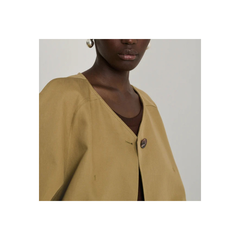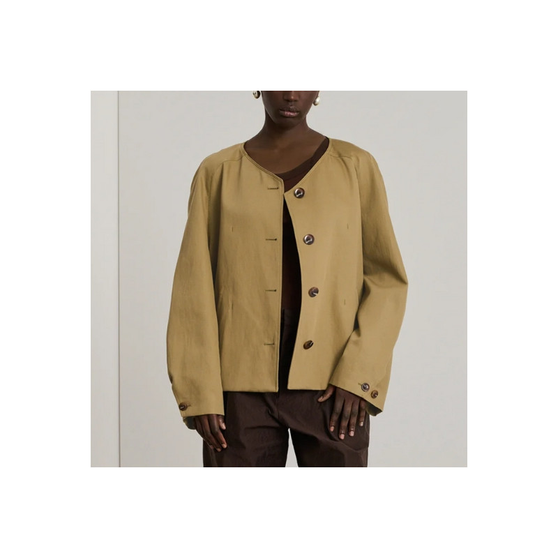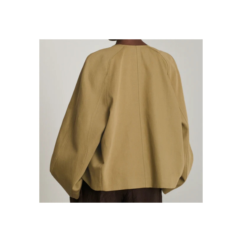 Laissez-vous séduire par la veste Damia de chez Soeur, un modèle qui allie structure et fluidité avec brio. Confectionnée en gabardine souple de coton et lin, elle arbore une coupe ample et arrondie qui modernise le vestiaire classique.