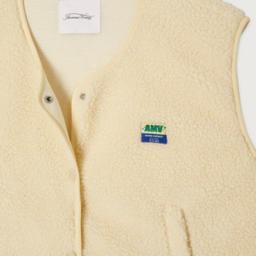 Un essentiel tout doux signé American Vintage, cette veste sans manches en 100 % polyester recyclé apporte chaleur et style. Facile à enfiler grâce à sa coupe sans manches et sa fermeture pressionnée, elle se porte en superposition pour un look cosy et tendance. Entretien : Lavable en machine à 30 °C.