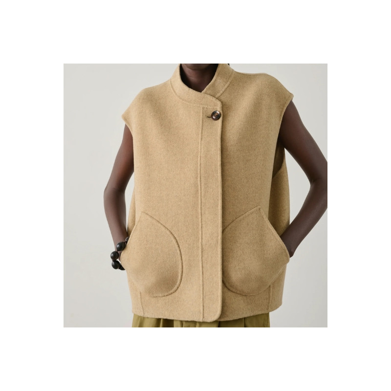 Le gilet sans manches ADELINE, en laine double face, séduit par sa coupe oversize et ses lignes épurées inspirées de la veste WINDSOR. Chaud, souple et facile à superposer, il apporte une touche moderne et structurée au vestiaire.