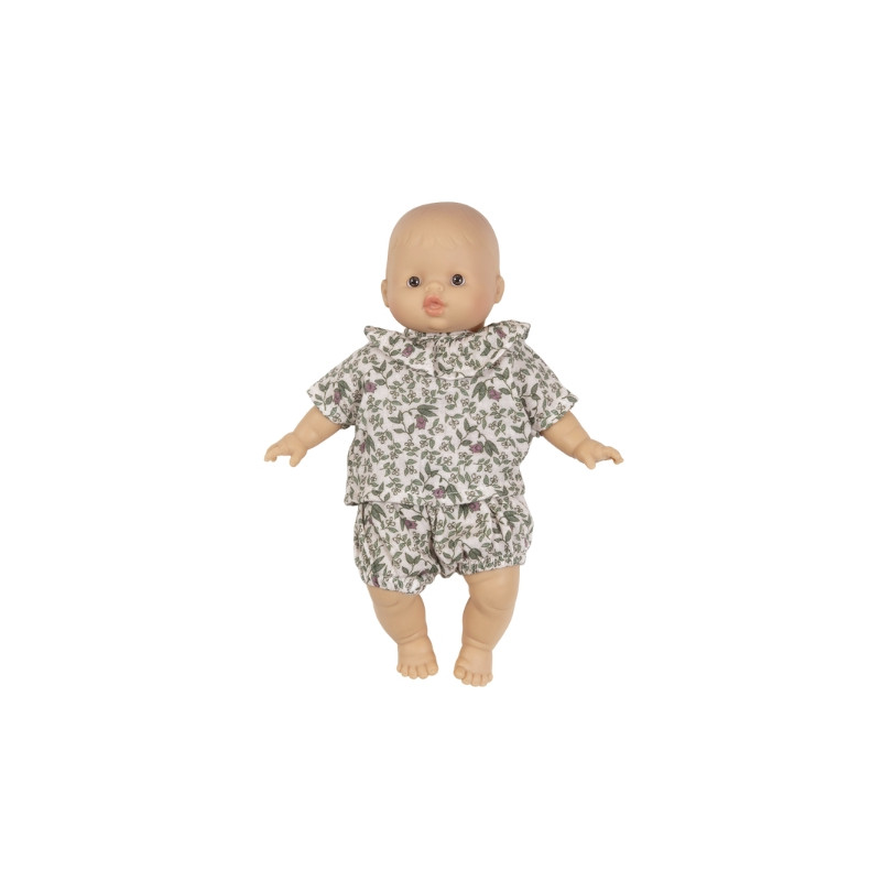 Plongez dans l'élégance avec l'ensemble top et bloomer imprimé "Amelie" de la marque Minikane. Cet ensemble, composé du top Coline et du bloomer en double gaze, est spécialement conçu pour les poupées et poupons Babies mesurant 28 cm.